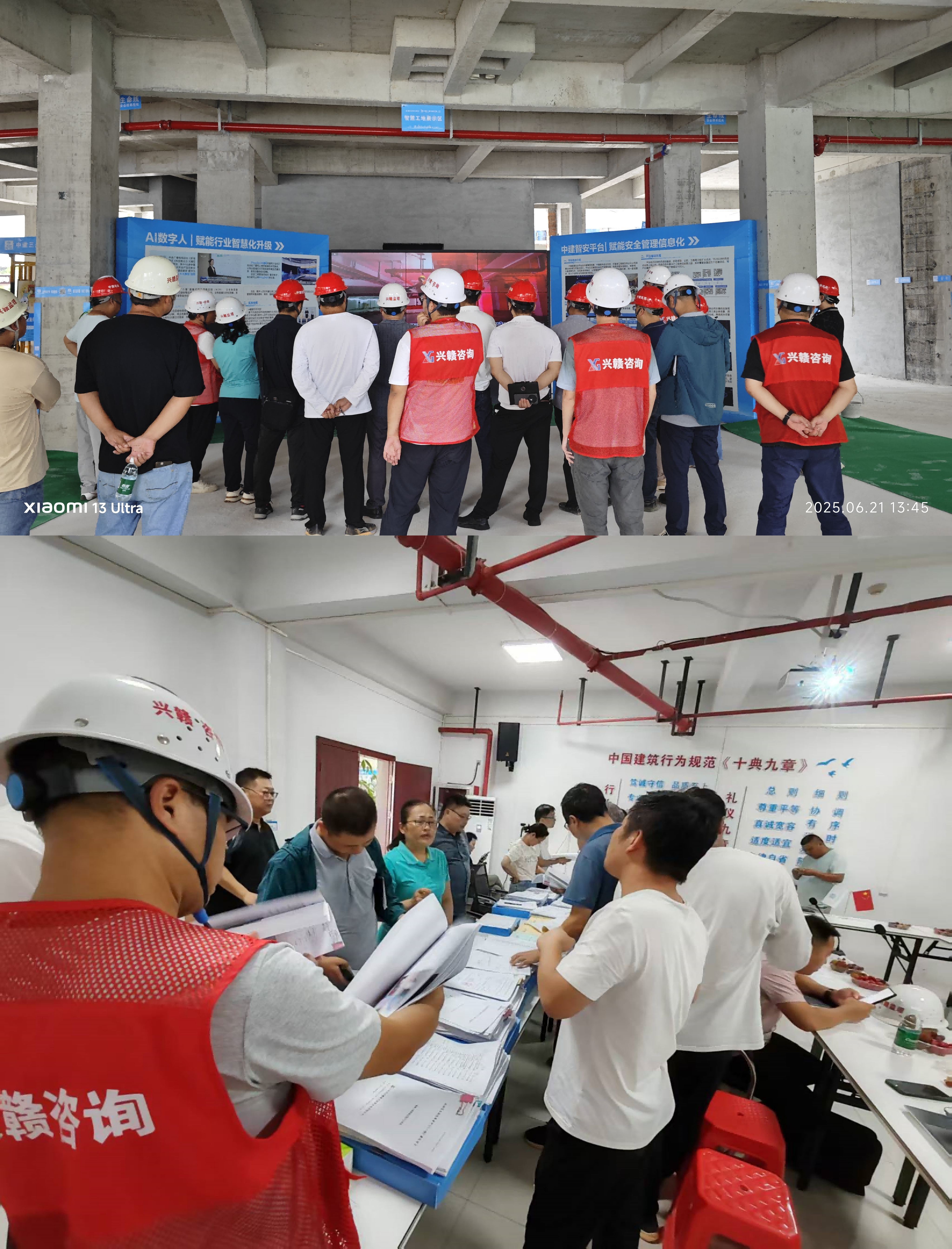 活動開始,與會人員參觀了我司負責監理的東湖區區域性養老中心(一期)建設項目施工現場,現場觀摩了安全體驗區、材料封樣室、集中工法樣板展示區、土建、精裝工序、工法實體樣板展示區。隨后,在辦公區域,大家查看了監理履職標準化流程在工程質量控制、安全生產監督、進度管理及資料歸檔等方面的成果。項目監理部通過清單化履職、可視化交底等創新手段,將監理工作細化為可量化、可追溯的標準化動作,獲得與會人員的高度評價。