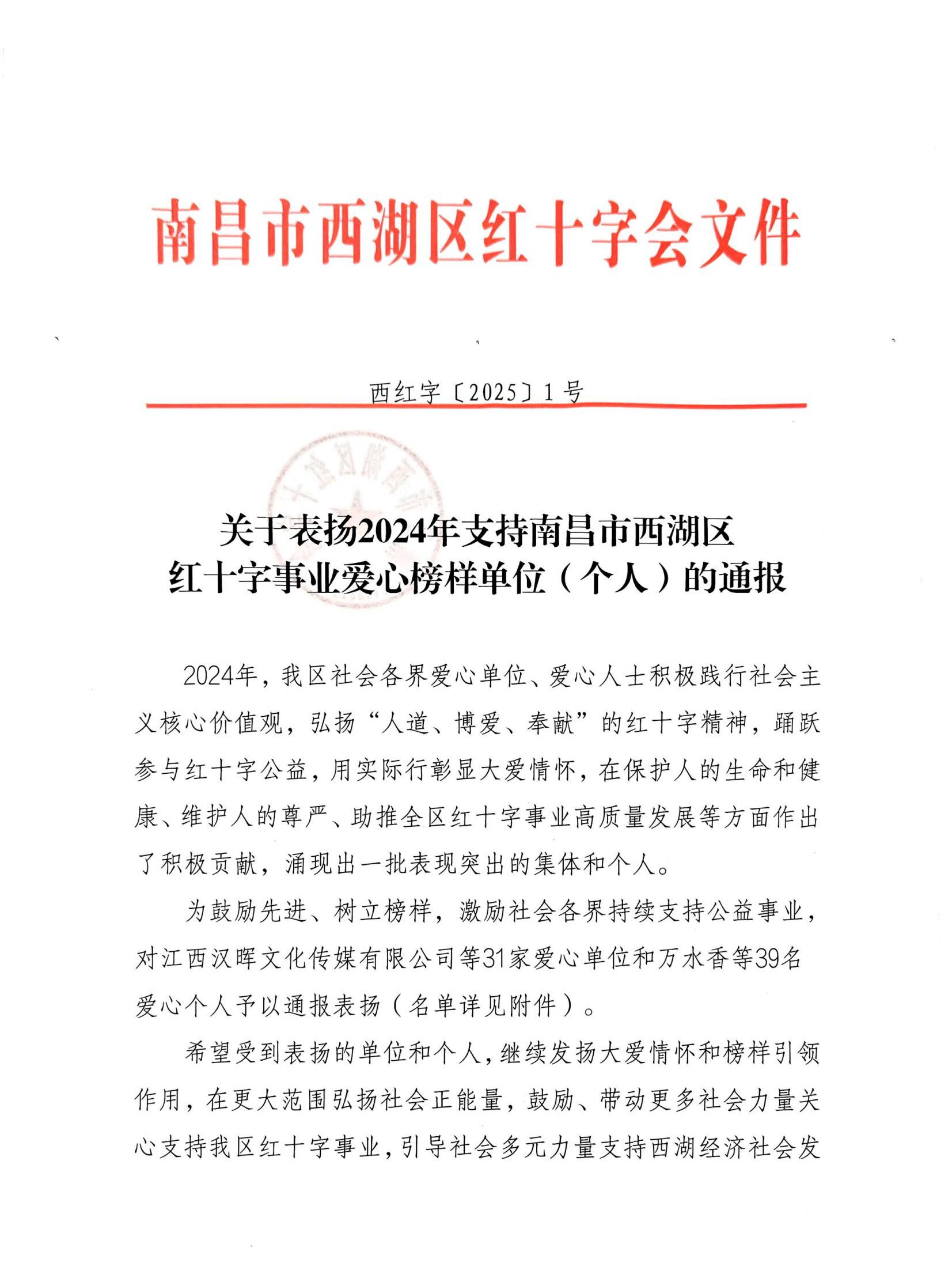 近日,我司榮登南昌市西湖區(qū)2024年紅十字事業(yè)愛心榜樣單位榜單,這一榮譽是對公司履行社會責(zé)任長期投身公益事業(yè)的高度認(rèn)可。