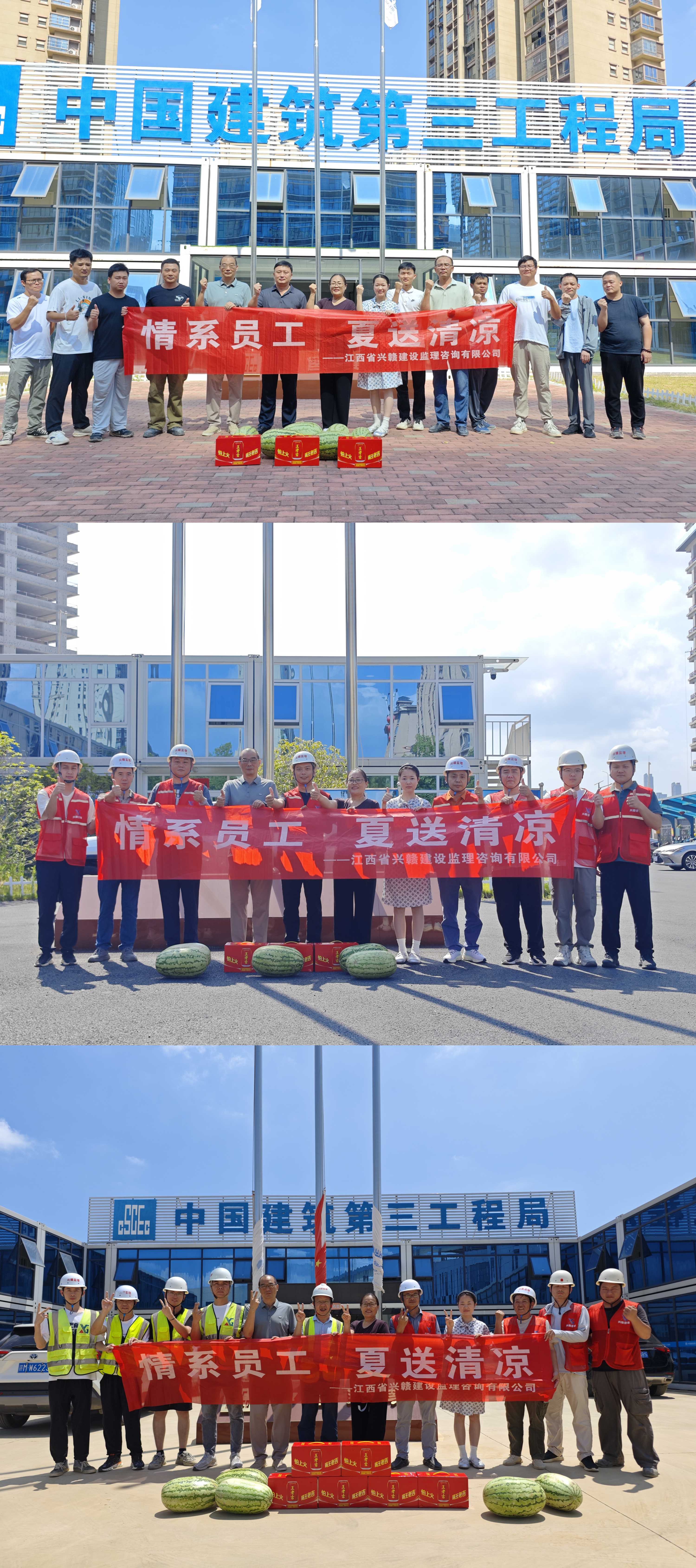 8月5日,南昌持續發布高溫橙色預警,為切實做好高溫天氣下員工關懷工作,興贛咨詢裘雪萍總經理和任兵總工親自帶隊,率工程部及行政人事部成員組成慰問組,深入東湖區區域性養老中心(一期)建設項目、南昌瑤湖科學島一期項目-南昌實驗室及配套道路項目、九龍湖片區C03地塊項目、紅谷灘基金產業園、南昌航空大學綜合科研大樓等項目現場,為奮戰在一線的監理人員送上清涼物資與關懷。